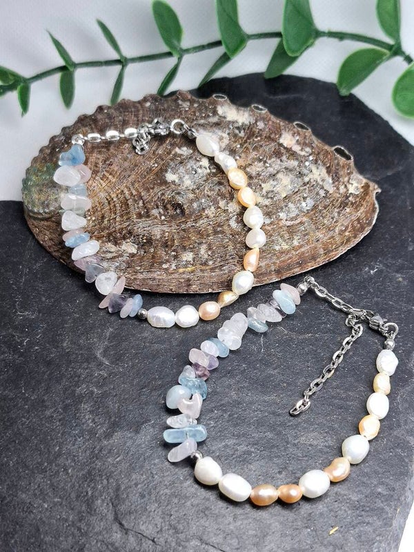 Besteht aus Süßwasserperlen und Fluorid Splitter.